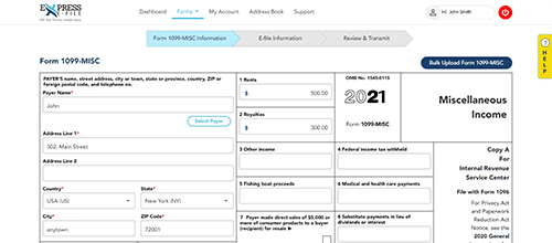 Sign up with ExpressEfile and select Form 1099-MISC from the list of supported forms. Start filling out the form information as filling out in a physical form. Make sure you have all the required information to complete the filing.